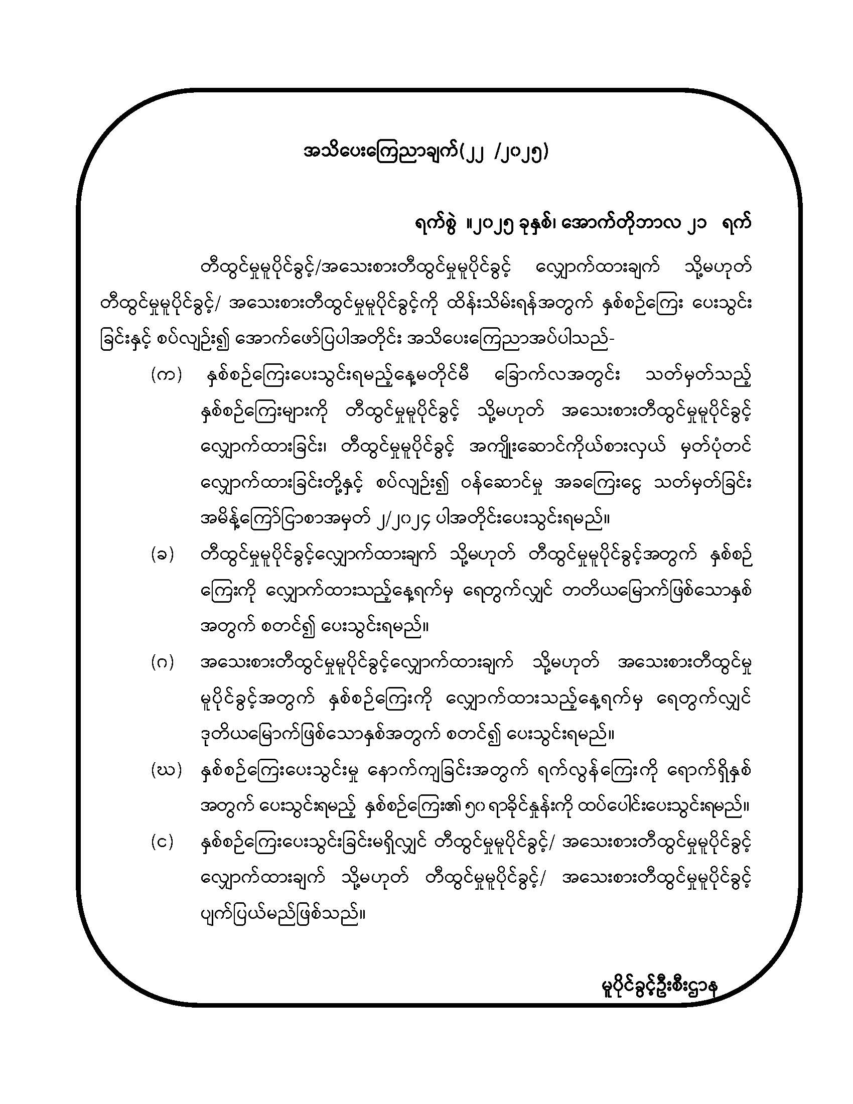 တီထွင်မှုမူပိုင်ခွင့် နှစ်စဉ်ကြေးပေးသွင်းခြင်းနှင့် စပ်လျဉ်း၍ အသိပေးကြေညာချက်(၂၂/၂၀၂၅) ( ပြင်ဆင်ချက်)