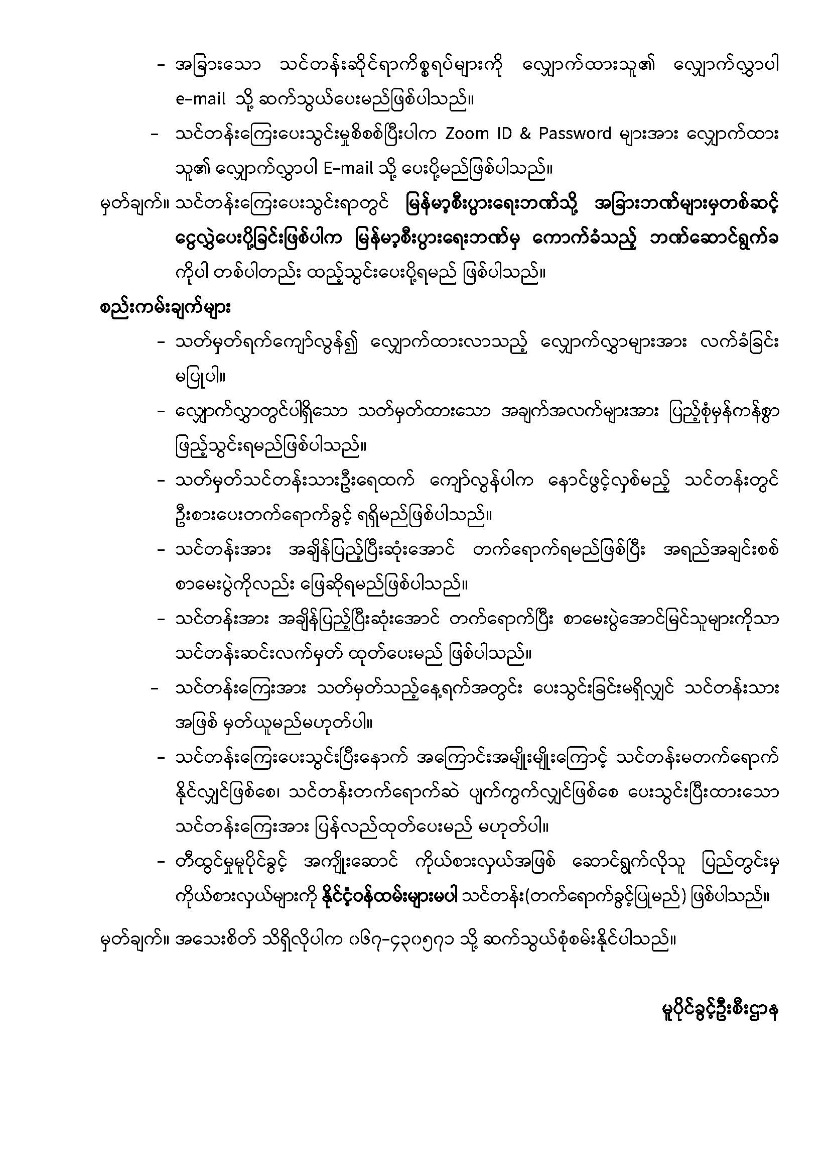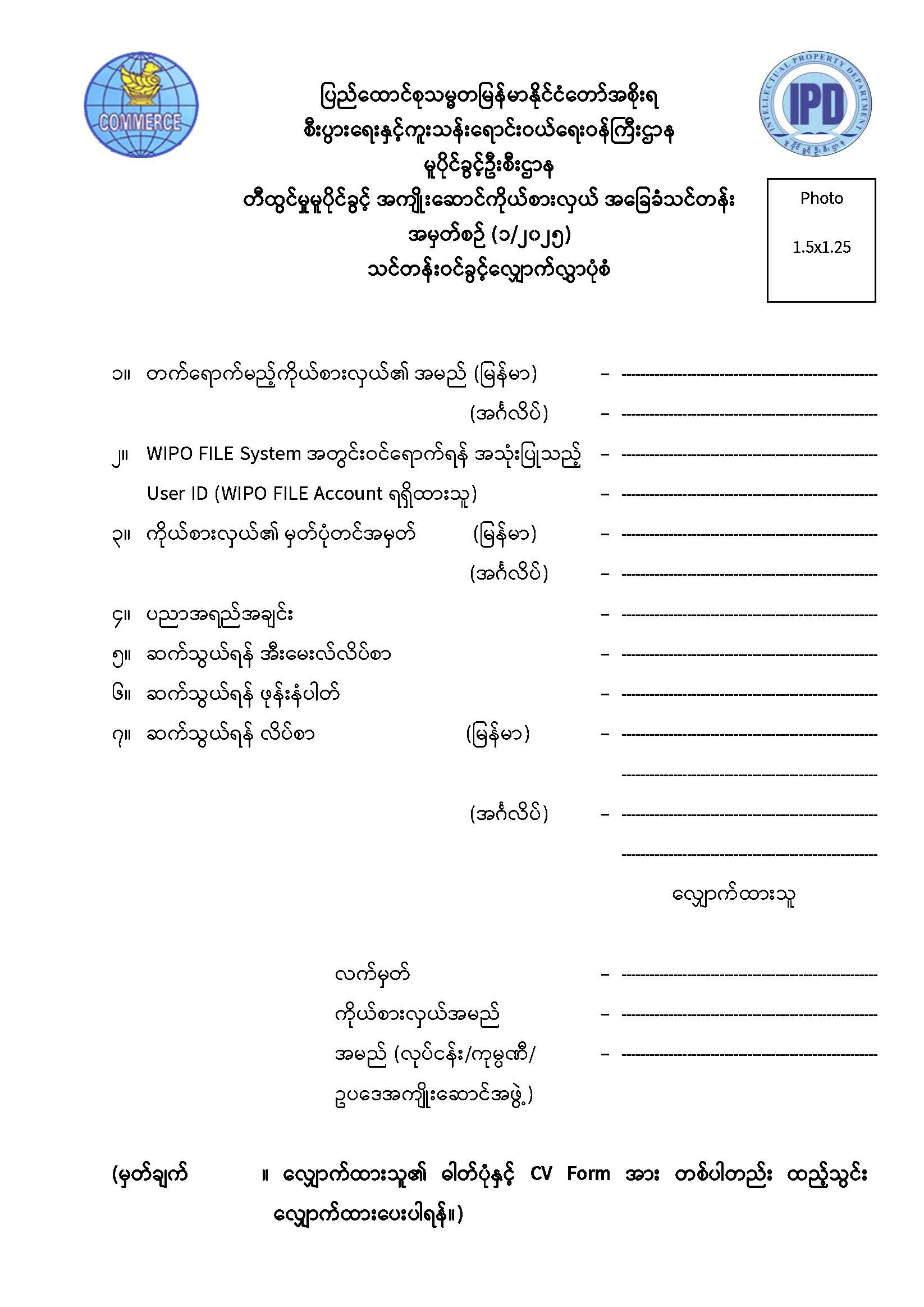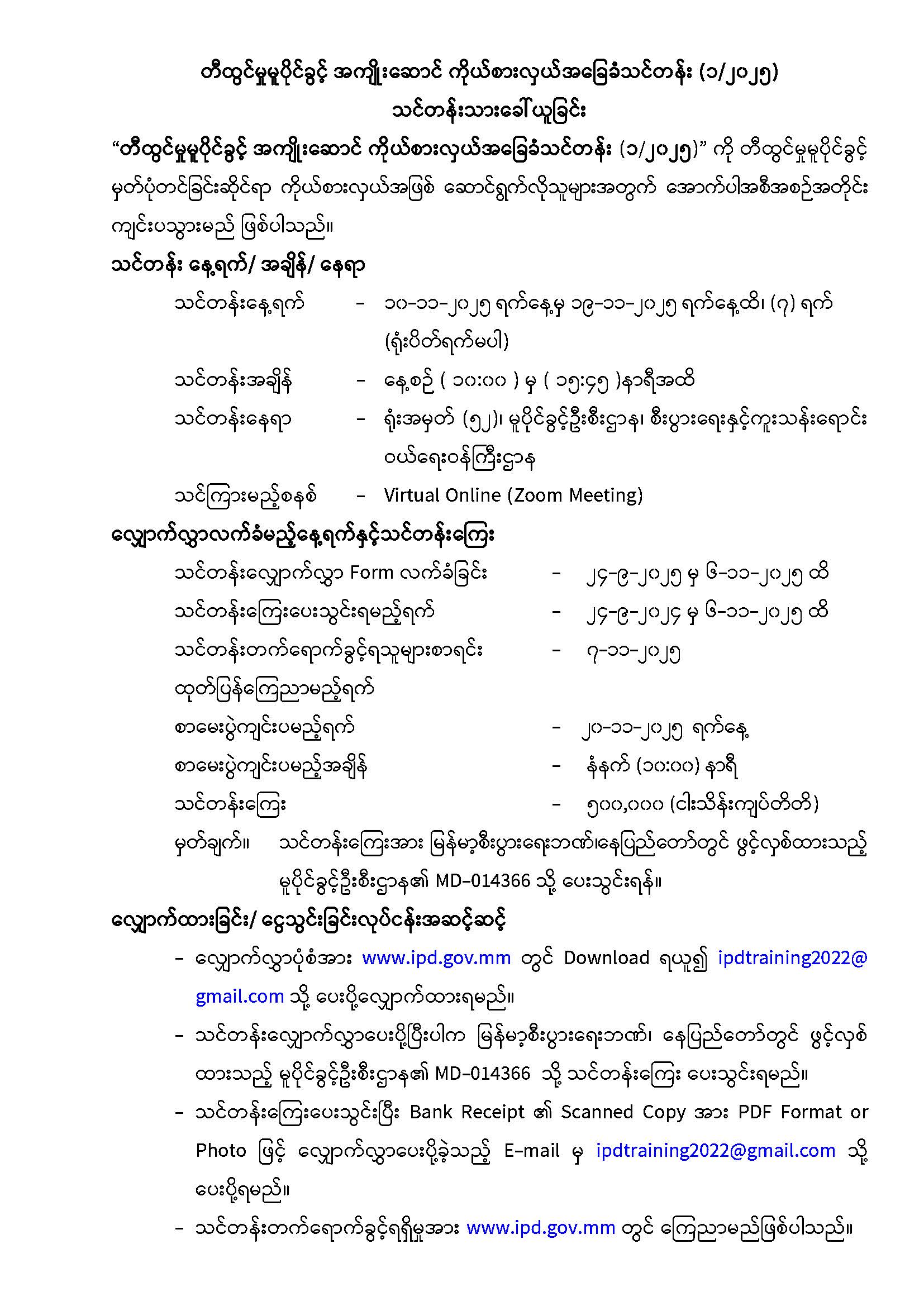 တီထွင်မှုမူပိုင်ခွင့်အကျိုးဆောင် ကိုယ်စားလှယ်အခြေခံသင်တန်း (၁/၂၀၂၅) ရက်ပြောင်းလဲ ဖွင့်လှစ်ခြင်း ipICTdep Thu, 10/16/2025 - 04:28