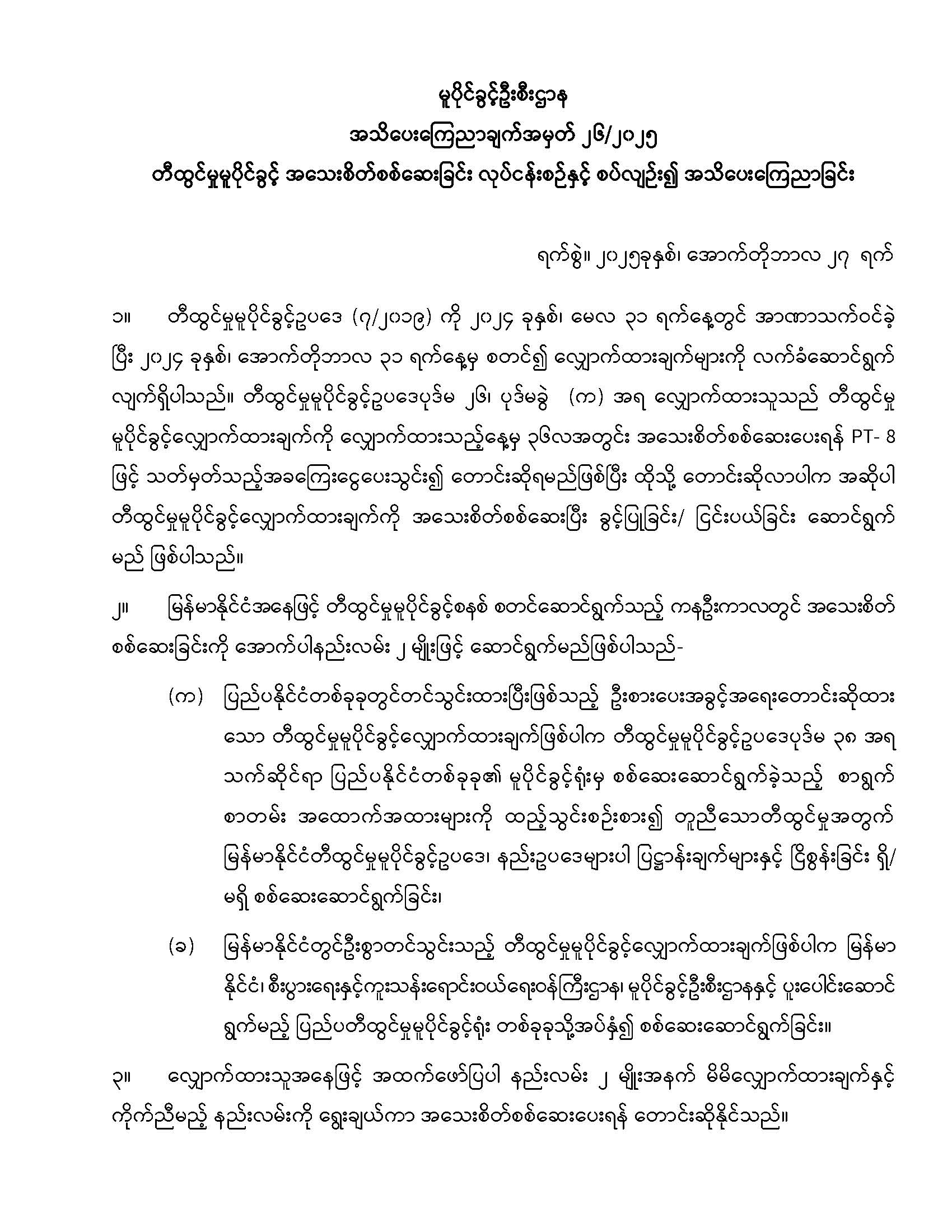 တီထွင်မှုမူပိုင်ခွင့် အသေးစိတ်စစ်ဆေးခြင်း လုပ်ငန်းစဉ်နှင့် စပ်လျဉ်း၍ အသိပေးကြေညာခြင်း (အသိပေးကြေညာချက်အမှတ် ၂၆/၂၀၂၅ ) ipICTdep Mon, 10/27/2025 - 08:40